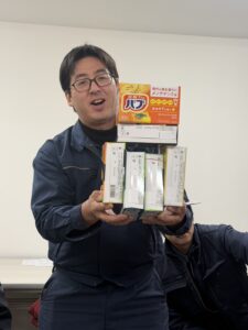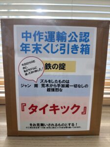 2025/12/29 年末、中作運輸では大掃除後必ずくじ引き大会が開催されます。 はずれなし、必ず全員に何かがあたります。 欲しがらないものは最初から準備しないというスタイルですので弊社では大人気の企画となっております♪